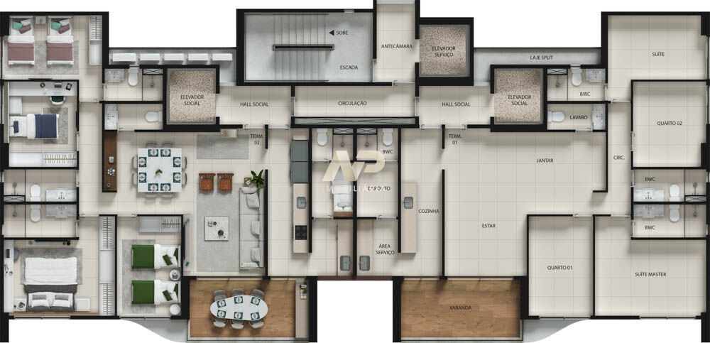 Os apartamentos possuem 131,82m² muito bem distribuídos, com 4 quartos, sendo 2 suítes, além da possibilidade de adaptação para 3 suítes sem alterações estruturais significativas. A varanda gourmet integrada à cozinha cria um ambiente perfeito para receber amigos e viver bons momentos, enquanto a sala ampla para dois ambientes reforça a sensação de conforto e elegância.