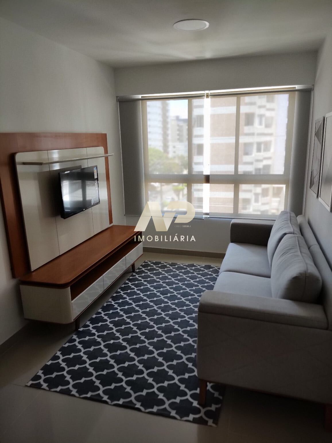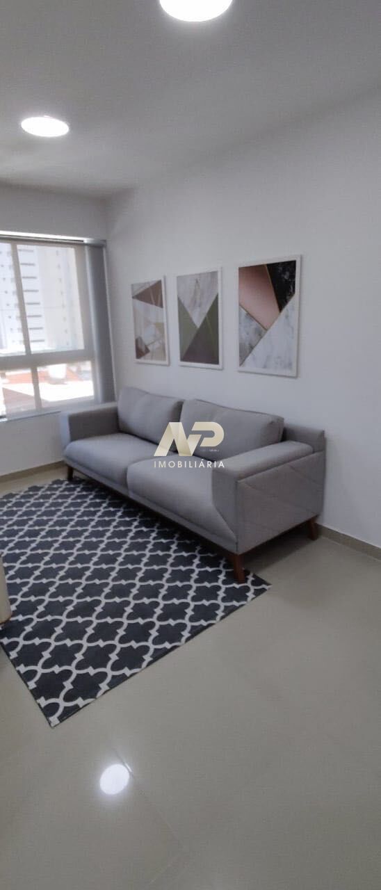 O apartamento em si é uma joia compacta, mas completa. Com 1 quarto, sala, cozinha, área de serviço e banheiro social, cada espaço foi projetado com cuidado para maximizar o conforto e a funcionalidade. Uma vaga de garagem está disponível para sua conveniência.