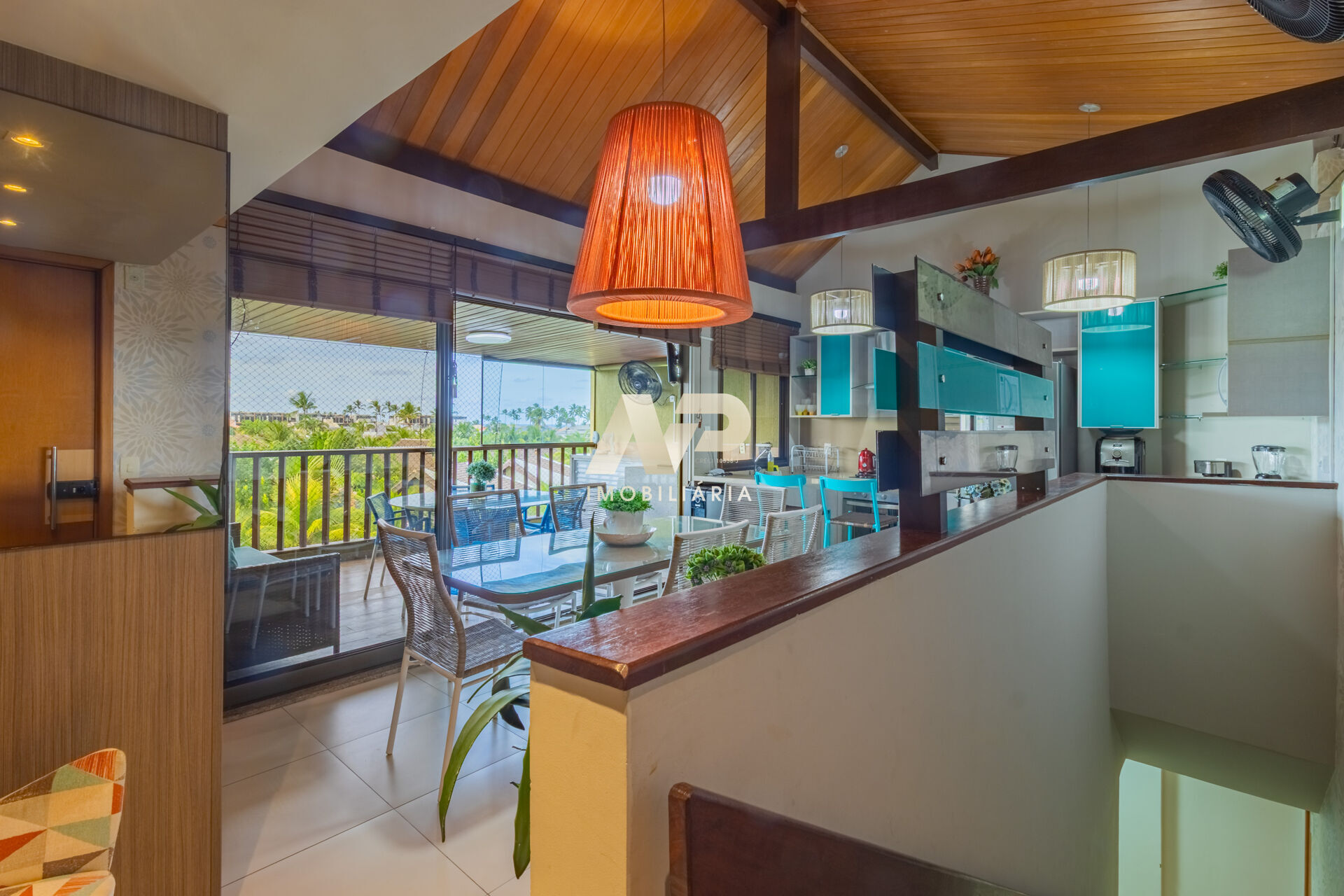 Com 119m² de área privativa, o apartamento está distribuído em dois pavimentos. No pavimento inferior, encontram-se 4 suítes bem equipadas, um depósito e uma escada de acesso ao pavimento superior. No pavimento superior, você desfrutará de uma cozinha americana moderna, uma elegante sala de jantar com mesa para 6 pessoas, além de uma varanda ampla com espaço gourmet, perfeita para apreciar a vista de todo o complexo. Todos os ambientes são climatizados, com ar-condicionado nas suítes e 4 TVs espalhadas pelo apartamento.